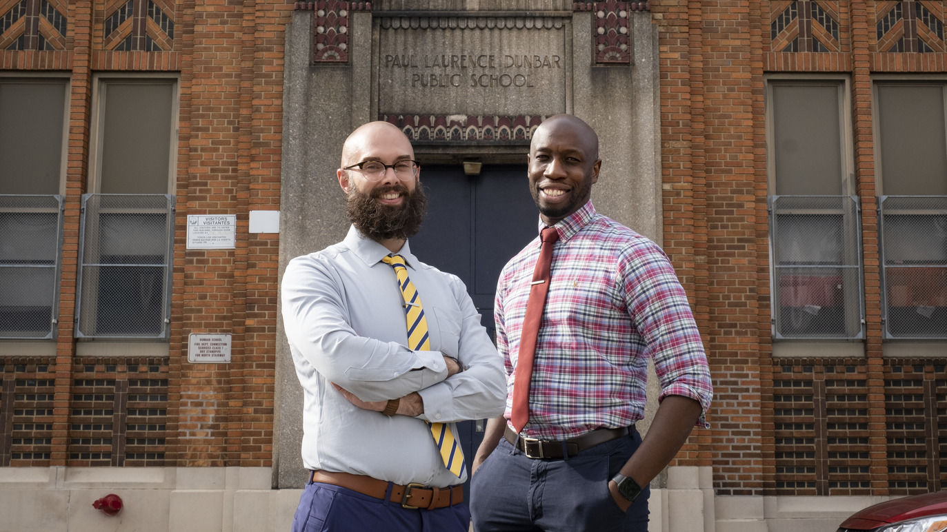 It seems fitting that Temple alumni Daniel Mina, EDU '14, and Justin Hall, CLA '08, were hired together as principal and assistant principal of nearby Paul L. Dunbar Elementary School to start this school year. They were close friends in middle and high school before taking different paths in education and uniting once again at Dunbar.